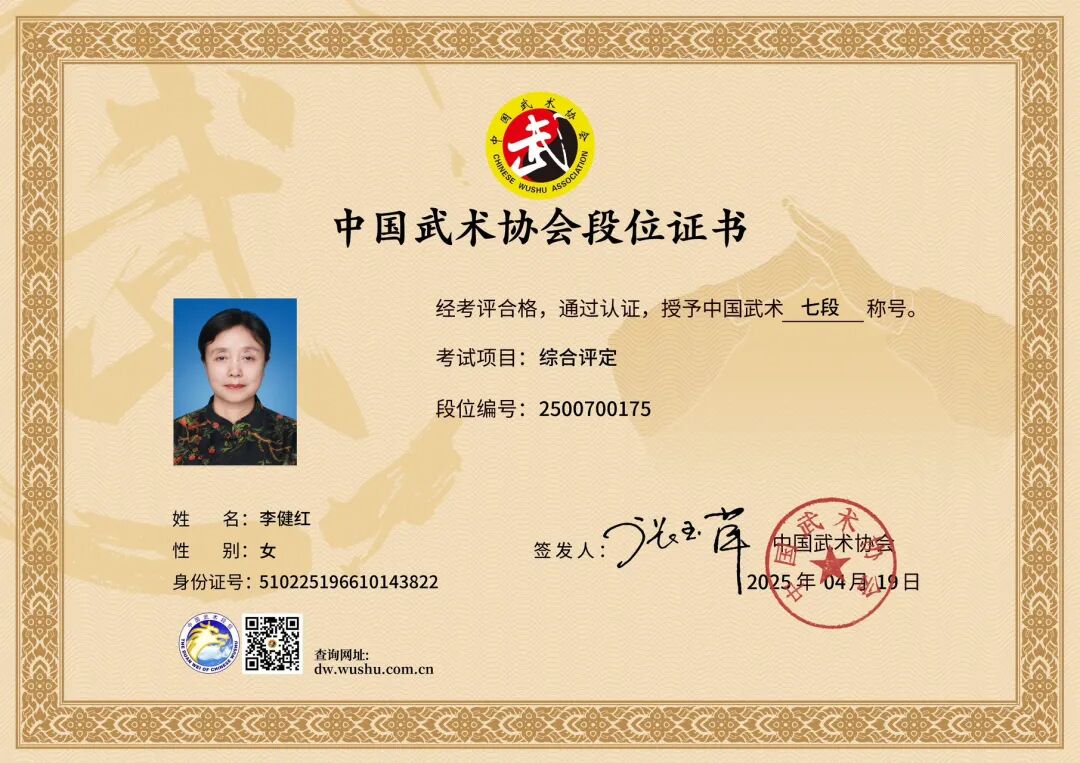 获奖从来不是我一个人的荣耀。它是师父二十年如一日的坚守教诲,是师母默默的陪伴与支持,是同门之间互相切磋、共同进步的深厚情谊,更是我们杨式太极拳最好的践行与传承。2025年考取国家武术七段,于我而言,是对二十年习拳之路的一份答卷,更是一份沉甸甸的责任——这份责任,是对师父师母的感恩,是对杨式太极拳传承的担当,更是对杨式太极文化的坚守。