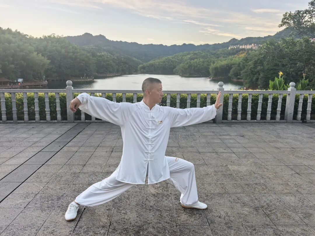 是师父,用耐心与坚守拉着我们没走偏。他从不会因为我们反复出错而责备,反而俯身纠正我们的每一个细节——松肩沉肘要做到极致,脚底涌泉穴要稳稳扎根,每一个要领都拆解得细致入微。记得有一次为了练会一个定式,我练了几天都不得要领,情绪低落到了极点。师父看出了我的沮丧,没有多说大道理,只是把动作拆解成一步步的细节,从身形到意气,从虚实到节奏,一遍遍示范,一遍遍点拨。他说:“太极拳拳架非常重要,要慢,慢下来才能找到其中的错误和不足。要想学好太极拳,就要多跟师父学习,你现在不懂,但是你要记住师父的话,总有一天你会明白的。”也是这些话,让我熬过了无数个练拳受挫的时刻,慢慢沉下心来,日复一日地打磨基本功。